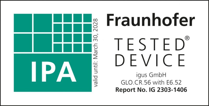 Fraunhofer IPA作为易格斯的开发和认证合作伙伴,在科隆设计并建造了一间配备ISO 1级无尘室系统的定制化无尘室实验室。 在实验室里,我们可以更有效率地在真实工况下为客户进行测试和新品开发。带4个滚轮立柱和E6.52系列拖链的完整GLO.CR无尘室方案.获得了IPA颁发的ISO 5级认证